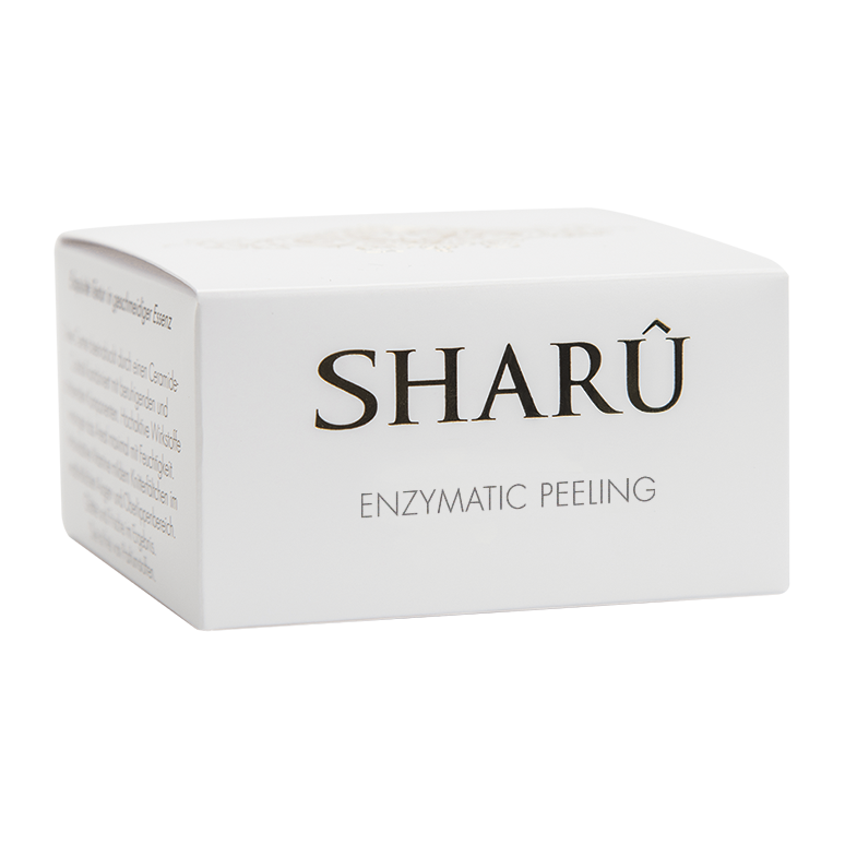 Das SHARÛ “enzymatic peeling” befreit die Haut von ihrem matten, münden Erscheinungsbild. Die sanft reinigenden Verbindungen aus einem Komplex von enzymatischen Wirkstoffen, befreien die Haut von dieser Blockade. Nützliche Inhaltsstoffe haben somit deutlich mehr Möglichkeit zu ihrem Bestimmungsort also dem eigentlichen Wirkungsort zu gelangen um Ihrer Haut ein Vielfaches an optischer Frische zu geben. Das SHARÛ “enzymatic peeling” entfernt nicht nur die abgestorbenen Hautschüppchen sondern bietet zusätzlich noch einen entschlackenden bzw. entfettenden Effekt für Ihre Haut.